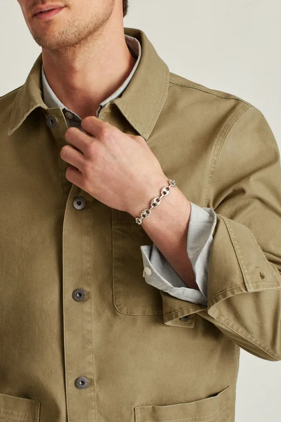 Patch Pockets at Chest and Waist | Metal Shanks at Center Front and Sleeve Cuff | Unlined Interior | Interior Patch Pocket | Contrast Locker Loop at Interior Neck | Contrast Interior Threads