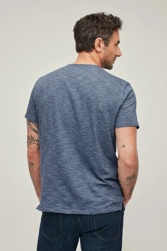Soft Slub Jersey with Feeder Stripe for Variated Effect | Contrast Pop Color Twill Tape at Side Seam Split