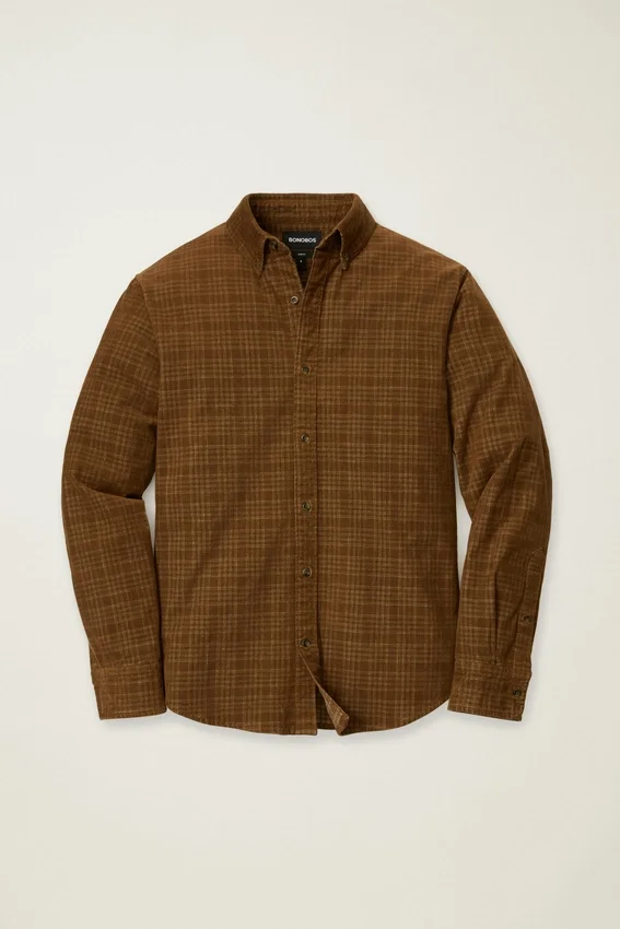 Button-Down Collar | Front Chest Pocket | Soft Stretch Corduroy Fabric