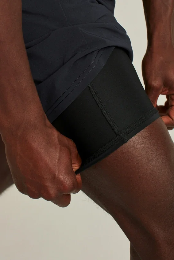 Lined | 7″ Inseam | Elastic Waist with Interior Drawcord | Secure Zipper Side Pocket | Interior Secure Media Pocket | Mesh Pockets for Breathability | Gusset for Ease of Movement