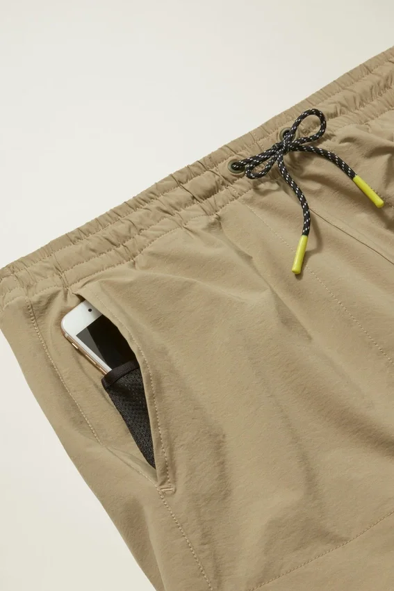Elastic Waistband | Drawstring with Contrast Tipping and Grommets | Back Pocket with Contrast Zipper Pull | Mesh Pocket Bags | Hidden Secure Media Pocket