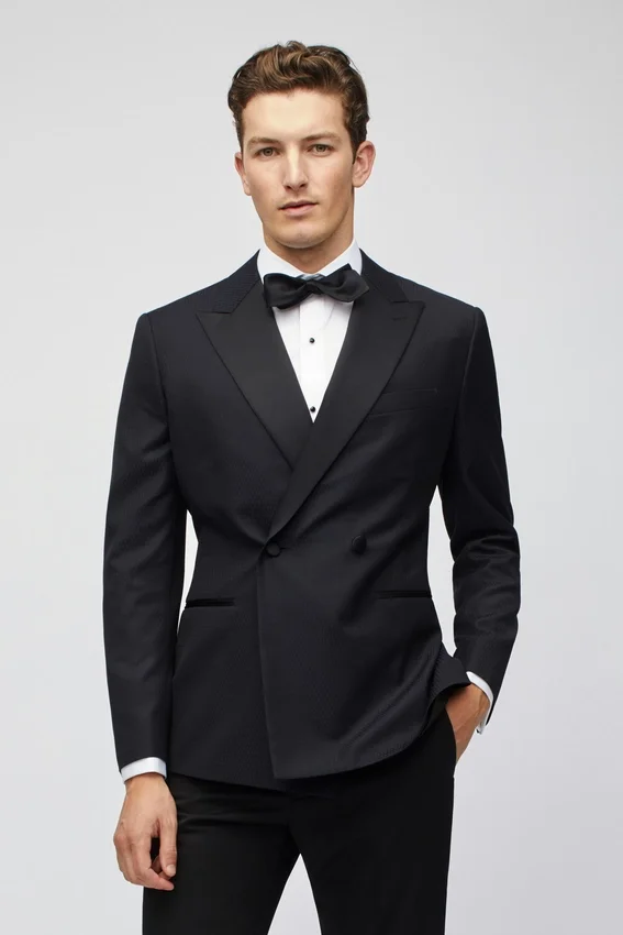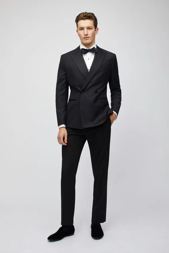 Contrast Peak Lapel | 2 Button Double Breasted | Fully Lined | Flap Pockets | Double Vent | Non-Functional Sleeve Cuff Buttons | Interior Welt Pockets
