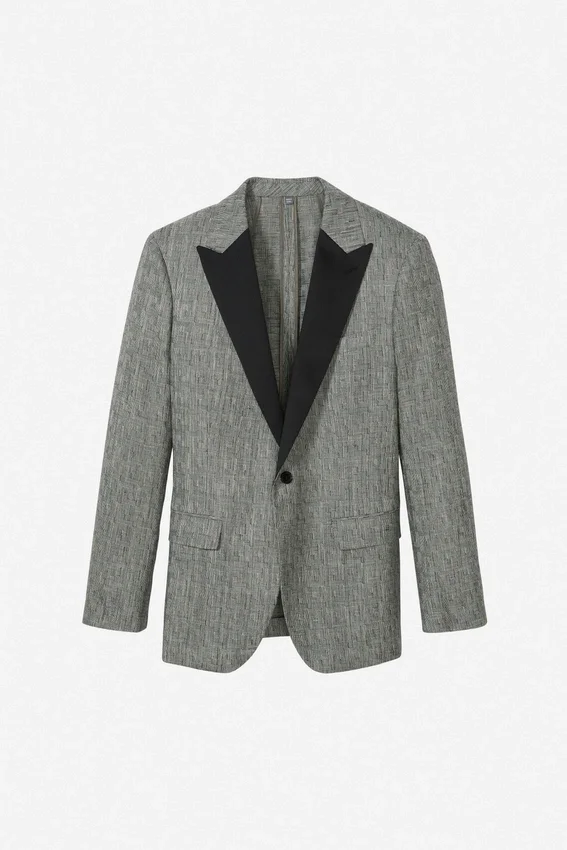 Contrast Peak Lapel | 1 Button Single Breasted | Flap Pockets | Unlined & Unconstructed | Interior Welt Pockets | Double Vent | Sleeves Are Lined | Non-Functional Buttons at Cuff