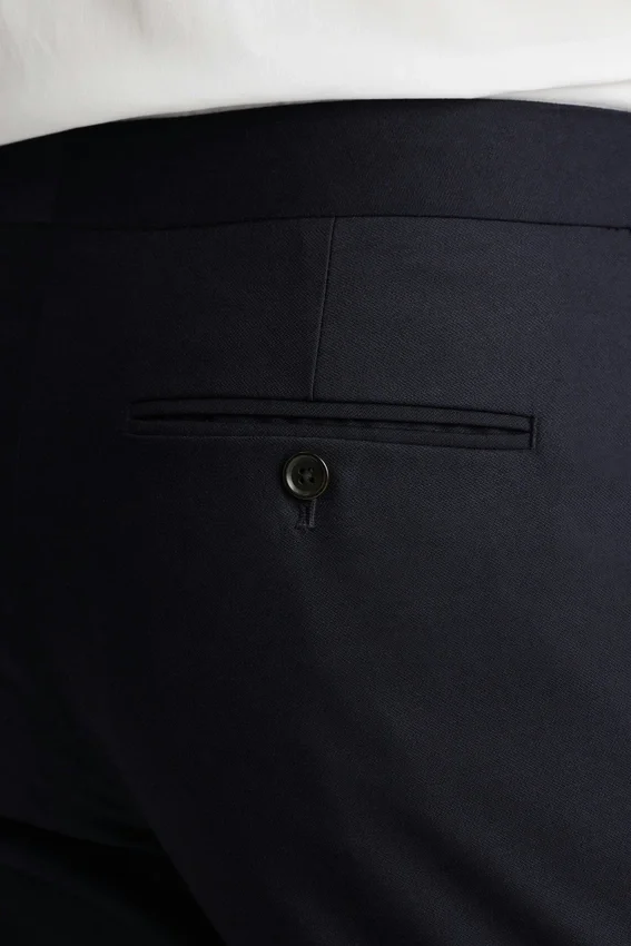 This Tux is Made in a Barethea Stretch Wool from Marzotto, and is Lined at the Front Leg in Premium Bemberg Lining. | Hook and Bar Closure | Suspender Buttons at Interior Waistband | Button-Through Back Pockets | Front Leg Lining