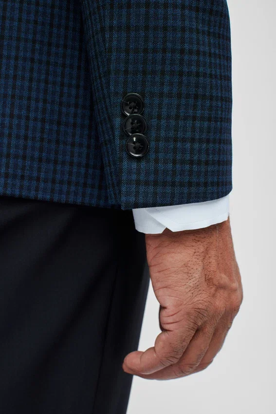 Wrinkle Resistant | Stain and Liquid Repellent | Notch Lapel | Full Lined | Flap Pockets | Two-Button Single Breasted | Non Functional Buttons at Cuff | Double Vent | Light Construction | Interior Welt Pockets | Interior Hidden Zip Pockets at Facing