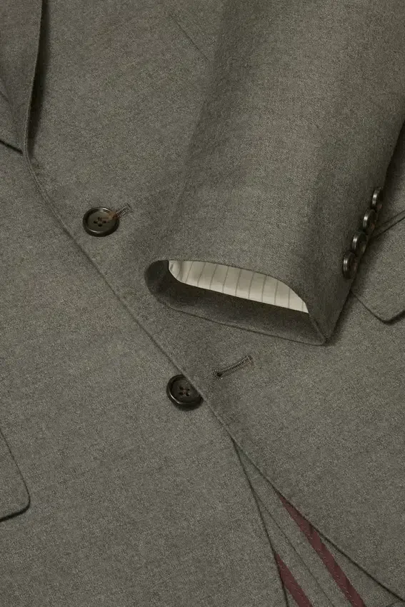 Notch Lapel | 2 Button | Pick Stitching at Collar, Lapel and Pocket Flaps | Butterfly Lined Interior | Sleeve Lining | Waist Flap Pockets | Chest Pocket | Interior Pockets | Back Vents