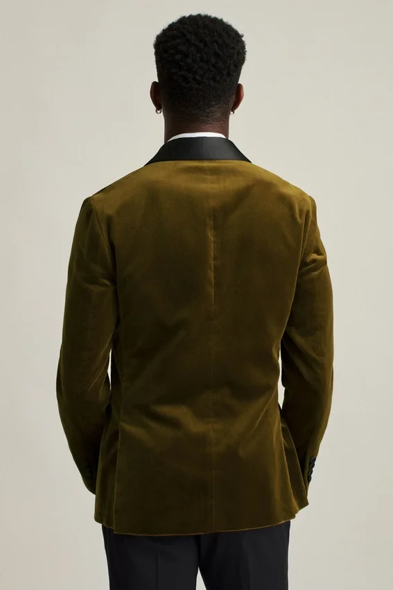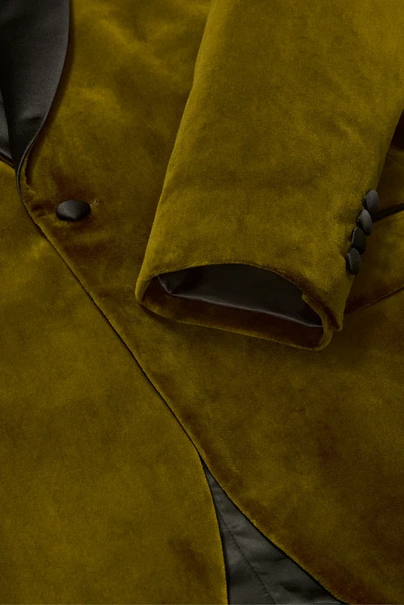 Shawl Collar | Single Button at Front | Contrast Satin Lapel | Flap Pockets | Fully Lined Interior | Back Vents | Satin Covered Buttons