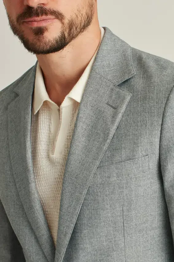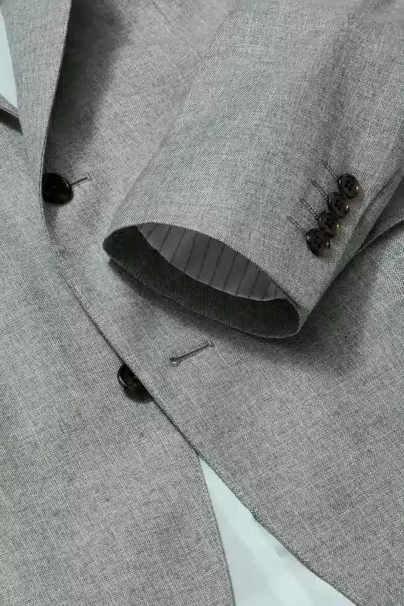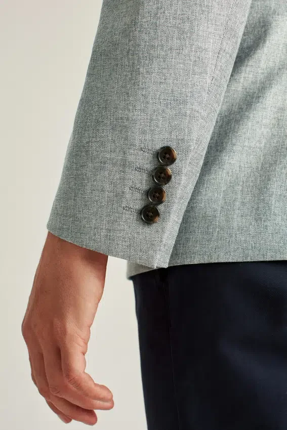 Jacket Features Notch Lapel | Flap Pockets | 2 Button Single Breasted | Fully Lined Interior | Interior Welt Pockets | Non Functional Buttons at Cuff | Felt at Undercollar | Double Vent | Light Construction