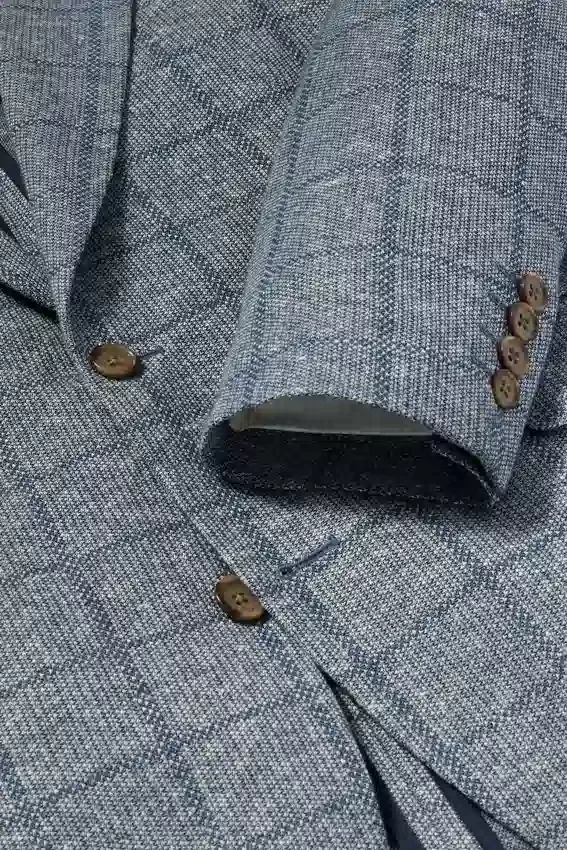 Fabric from Maggia Mill in Italy | Flap Pockets | Partially Lined in Lightweight Cotton | Non-Functional Buttons at Cuff | Sleeve Lining | Double Vent | Interior Pockets and Locker Loop