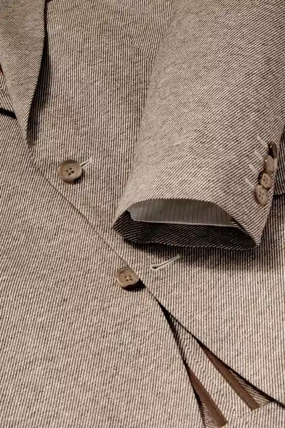 Fabric from Maggia Mill in Italy | Flap Pockets | Partially Lined in Lightweight Cotton | Non-Functional Buttons at Cuff | Sleeve Lining | Double Vent | Interior Pockets and Locker Loop