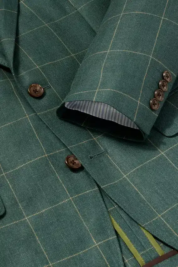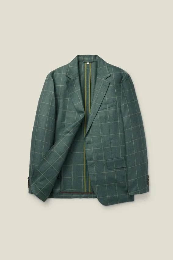 Fabric from Abraham Moon | Flap Pockets | Unlined Interior with Binding at Seams | Non Functional Buttons at Cuff | Sleeve Lining | Double Vent | Interior Pockets and Locker Loop