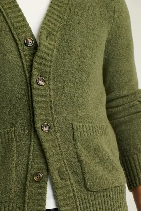 Wool Blend Boucla Yarn with a Subtle Texture | Lightweight Yet Warm & Super Soft | Jersey Stitch | Button Closure | Patch Pockets
