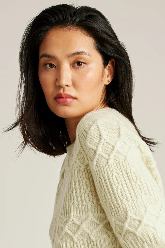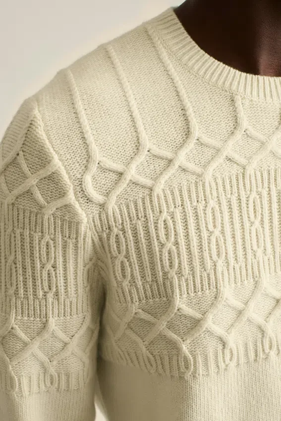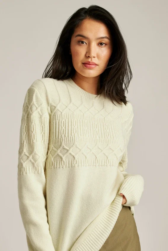 Cozy Wool Blend Yarn with Cable Stitch Upper Body and Sleeves | Jersey Lower Body and Sleeves | Rib Trims