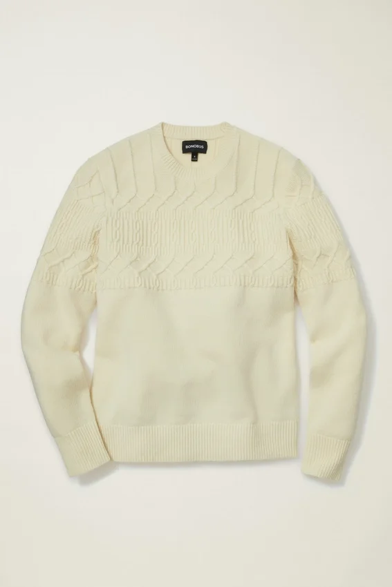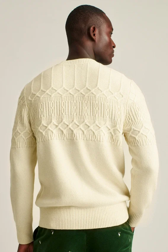 Our Cable Crew Neck Sweater for Men in Winter White is the Perfect Addition to Your Wardrobe and Offers a Sophisticated Yet Stylish Look. Shop Your Size Now!