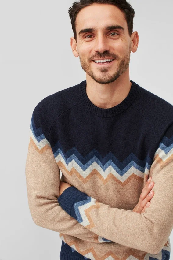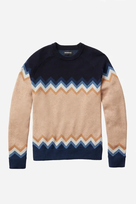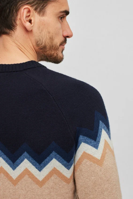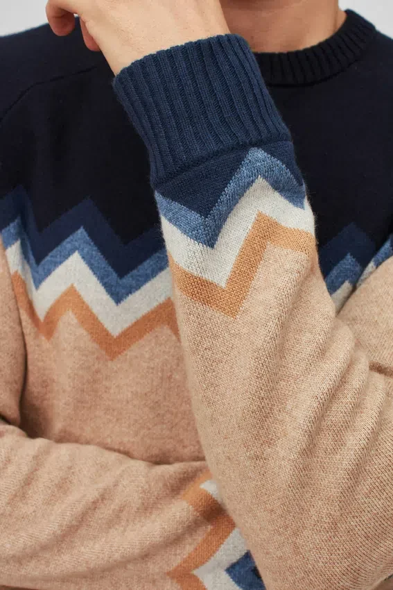 Lightweight Wool Blend Yarn with Chevron Motif in Raglan Sleeve Body