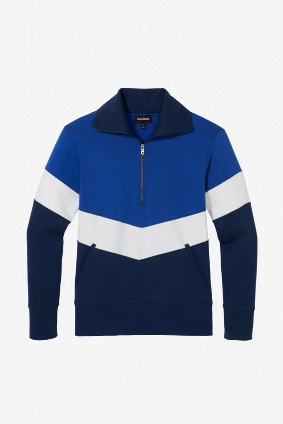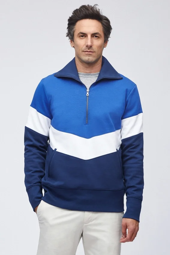 The Colorblock Half Zip Pullover Sweater is One of a Kind. Big Lapels That Can Zip up into Turtleneck. Smooth Fleece Interior and a Chevron Design. Free Shipping!