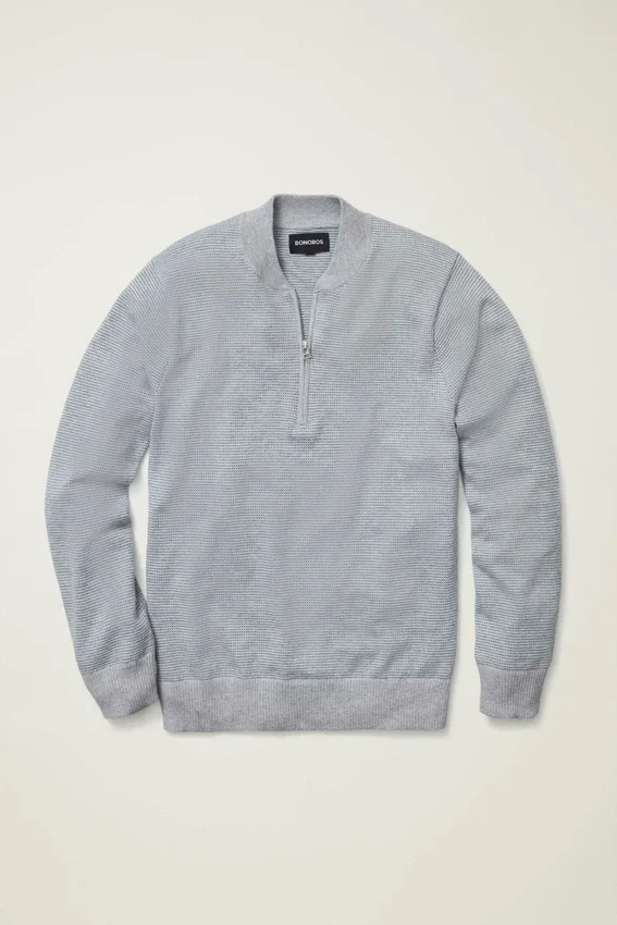 Breathable Yarn with Light Feel | Half-Zip Closure | Multicolor Birds-Eye Stitch | Baseball Collar