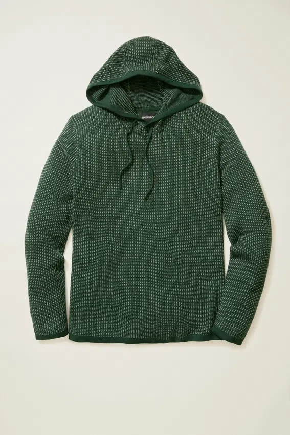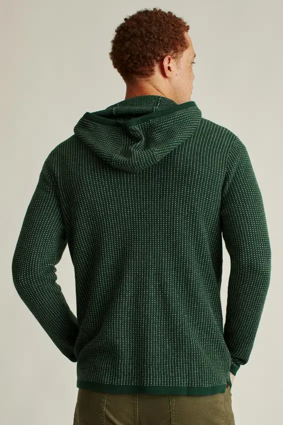 Machine Washable | Jacquard Dot Pattern Body | Stepped Hem with Side Splits | Drawstring in Hood | Popover Hoodie Body