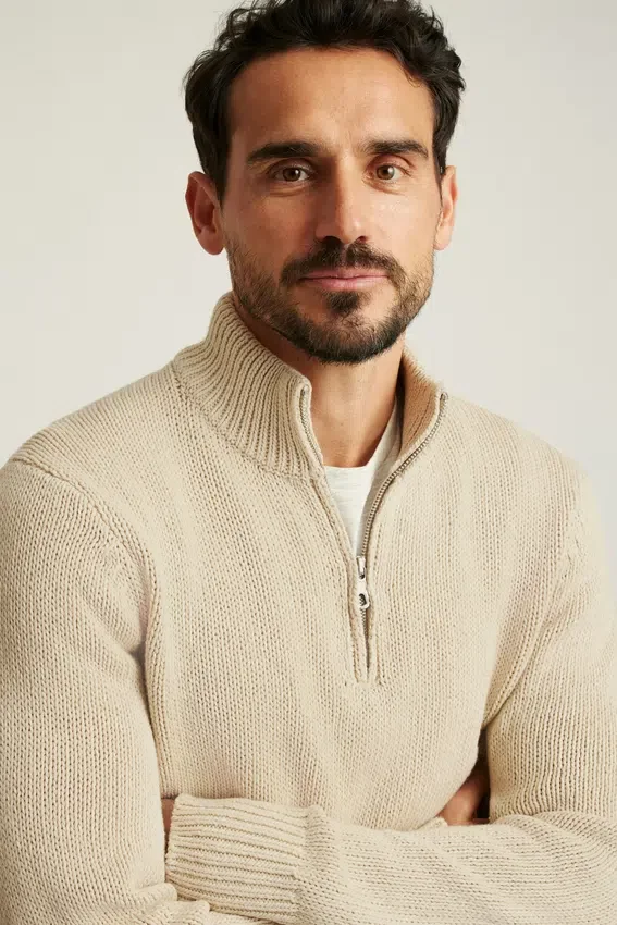 Cotton Linen Half Zip Sweater