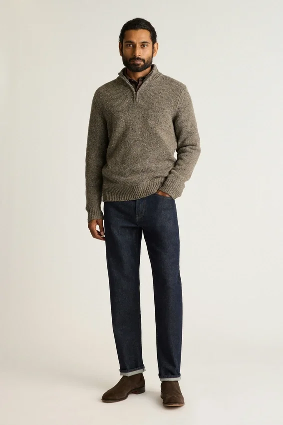 Soft and Warm Merino Blend Donegal Yarn | Jersey Stitch | Heavyweight | Zipper Closure at Neck