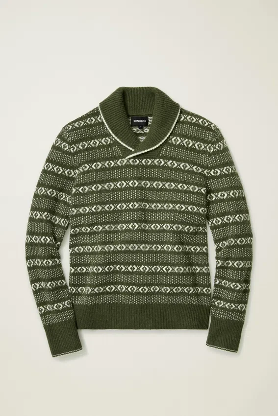 Check out the Vintage Style Fair Isle Shawl Sweater Pullover from Bonobos! This Fair Isle Style Shawl Collar Pullover is a Classic for Beating the Cool Weather.