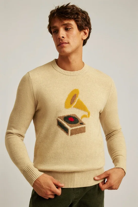 Cozy Wool Blend Yarn with Original Artwork | Contrast Color at Interior Back Neck