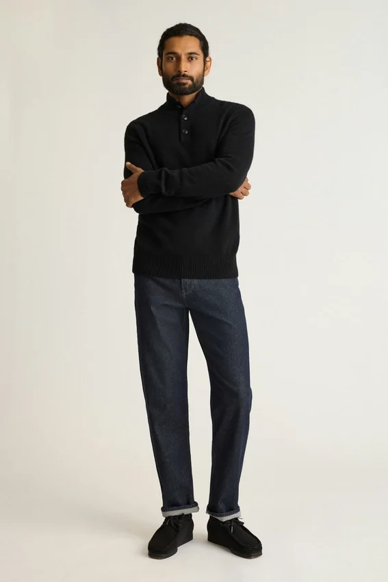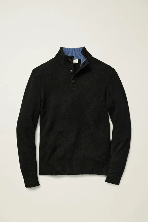 Super Soft and Warm Cashmere Yarn is the Ultimate in Luxury | Cashmere Yarn Produced in Italy | Mock Neck with Button Closure | Jersey Stitch | Midweight | Recycled Cashmere Content for Greater Sustainability