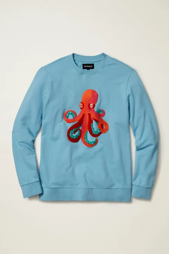 Super Soft Cotton with Chenille Embroidered Octopus