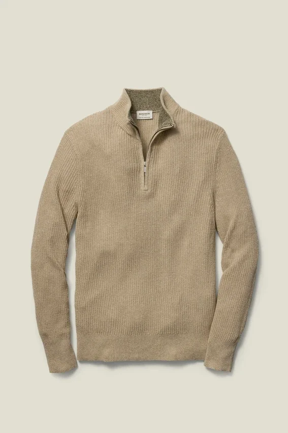 The Italian Linen Cotton Quarter Zip by Bonobos Delivers Relaxed Luxury with Breathable Comfort. A Men’s Quarter Zip Sweater Designed for Easy Layering Without Overheating.