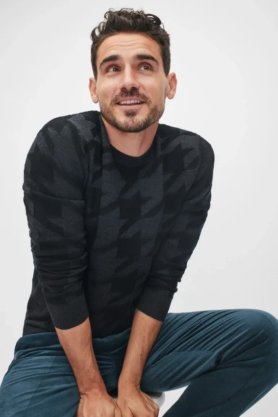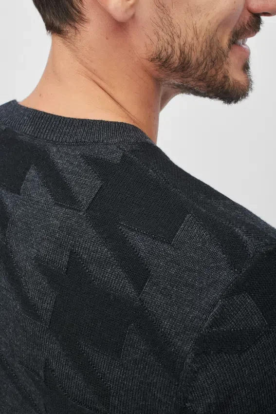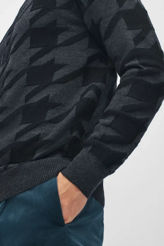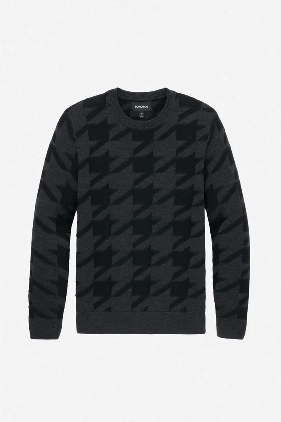 Merino Houndstooth Crew Neck Sweater