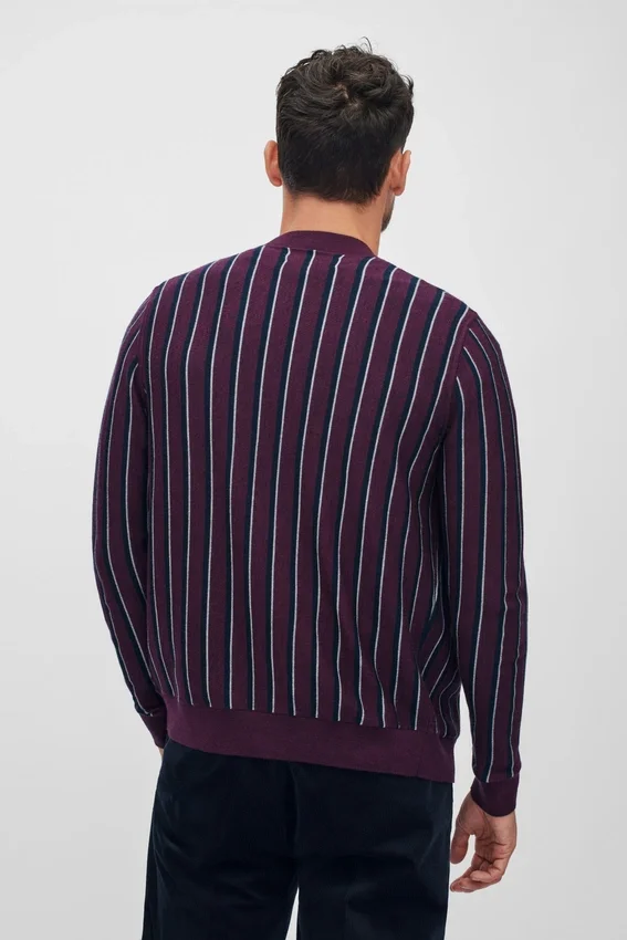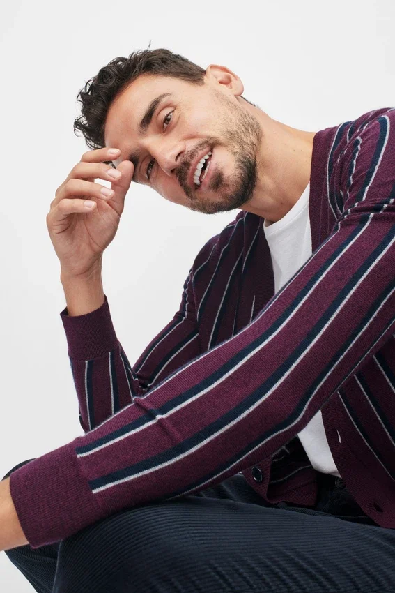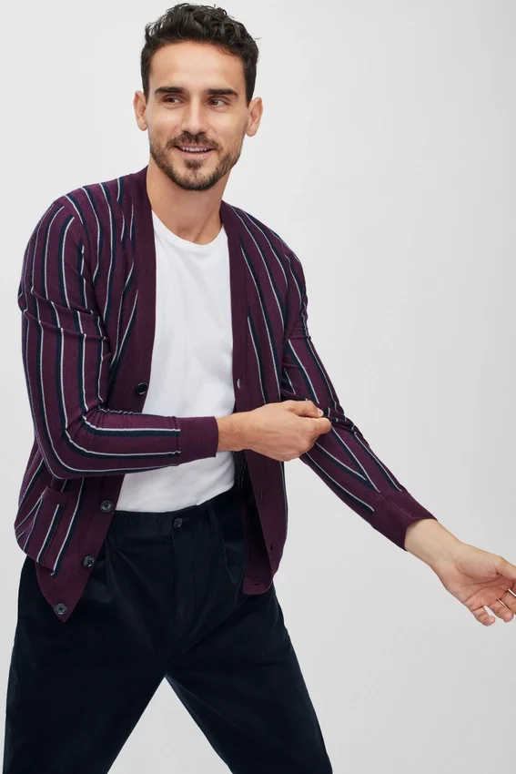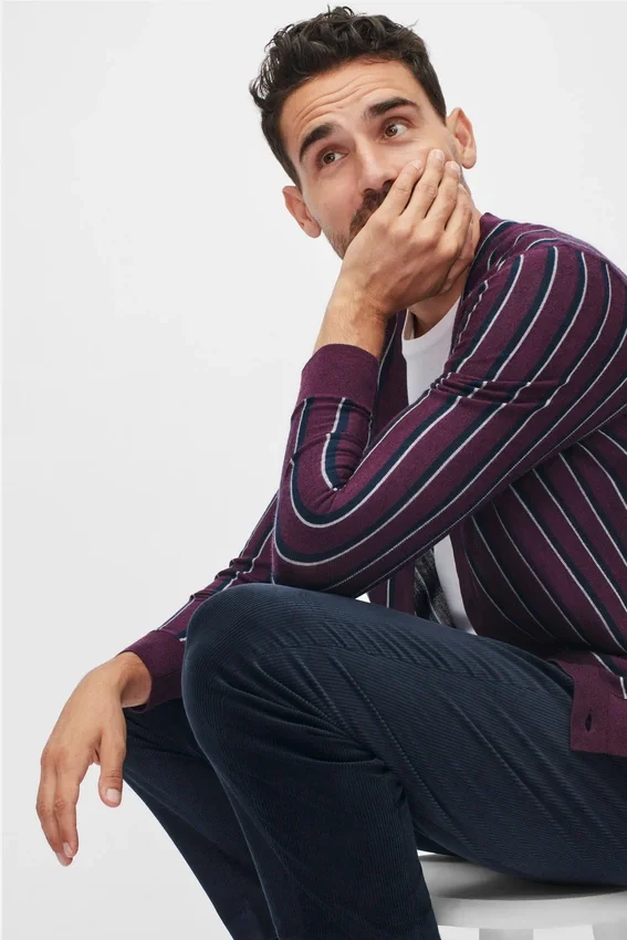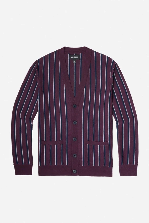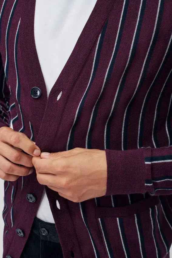 Soft and Luxurious Merino Wool in a Vertical Stripe Cardigan for a Retro and Vintage Feeling