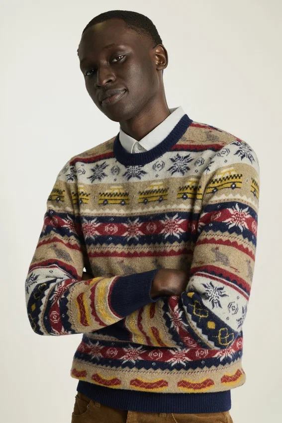 Embrace Nyc Style with Our Fair Isle Sweater, Featuring Original Artwork and Brushed for Extra Texture and Softness. A Must-Have Men’s Sweater for Iconic Style.