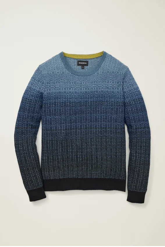 Enhance Your Wardrobe with an Ombre Sweater from Bonobos. Soft Merino-Blend Yarn and Bold Ombre Technique Create a Layerable Crew Neck Classic.