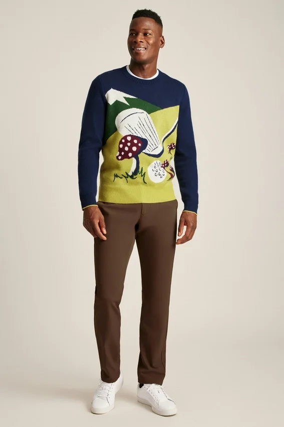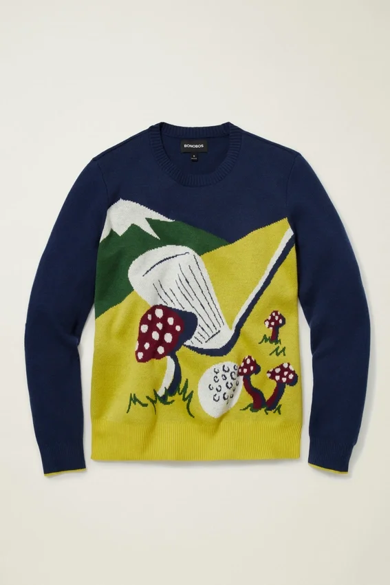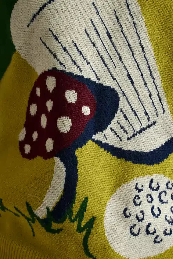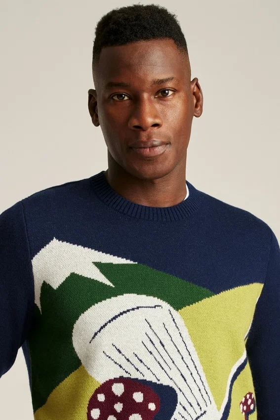 Soft and Cozy Blended Yarn with Allover Original Artwork | Contrast Tipping at Cuffs | Rib Trims