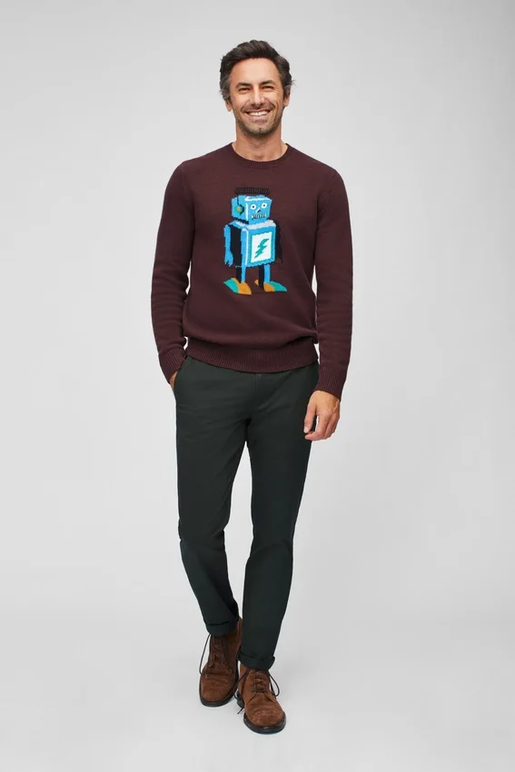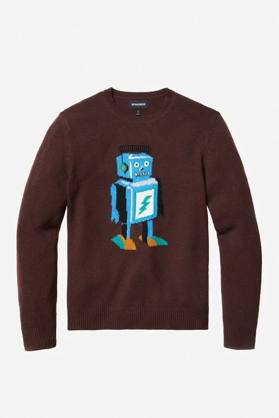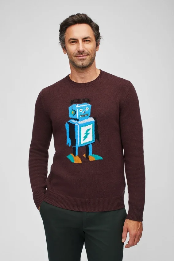 Soft Wool Blend Yarn with Integral Robot Motif on Chest