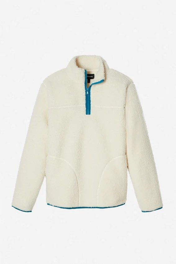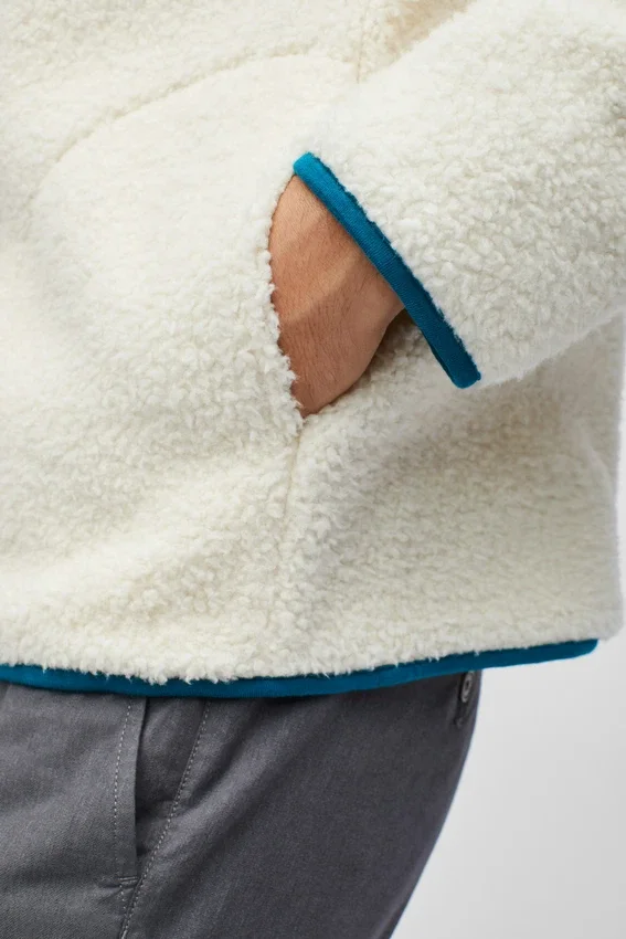 Soft and Plush Sherpa Fabric with Woven Cotton Lining | Contrast Woven Trims with Plastic Zipper