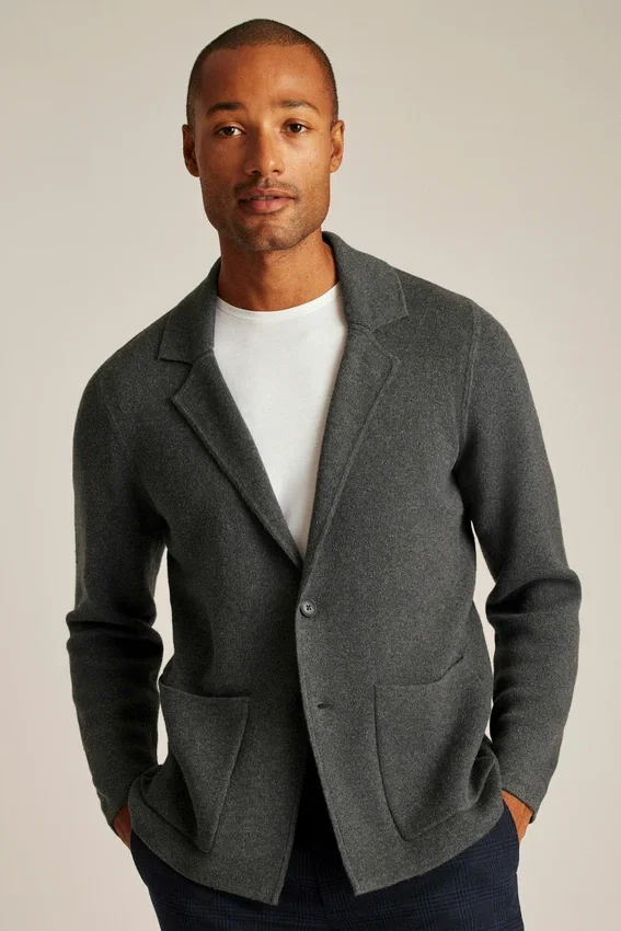 Our Men’s Sweater Blazer Will Keep You Comfortable All Spring. Made from Cotton Yarn with a Touch of Wool for Warmth. Plus, Stylish Pockets and Collar Designs.