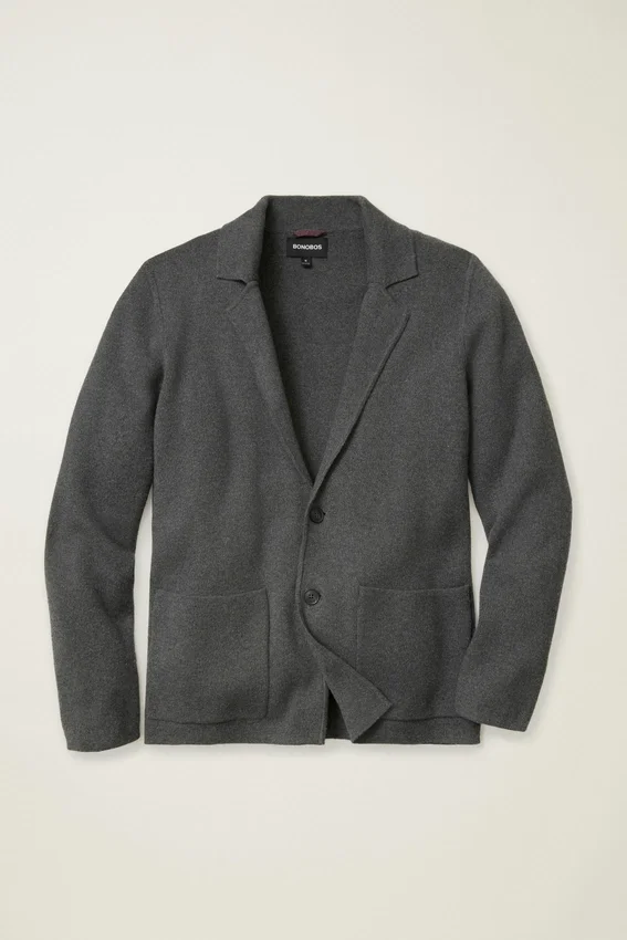 Soft Cotton Yarn with a Touch of Wool for Warmth | Classic Blazer Silhouette with Collar, Pockets, and Button Front Closure | Locker Loop at Back Neck