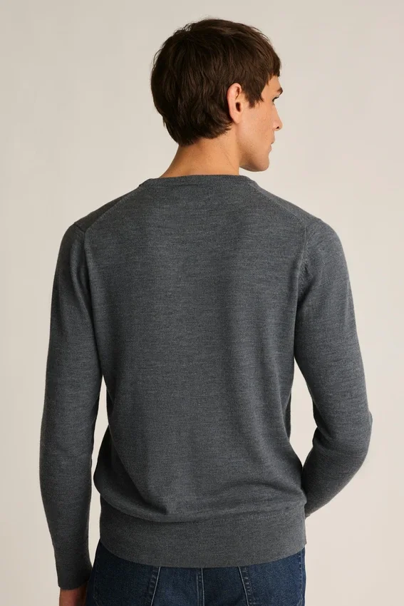 Lightweight Merino Wool | Jersey Body | Smaller, Refined 1X1 Rib Neck | Taller 1X1 Cuff and Hem | Hidden Contrast Color Stripe at Inside Neck Trim