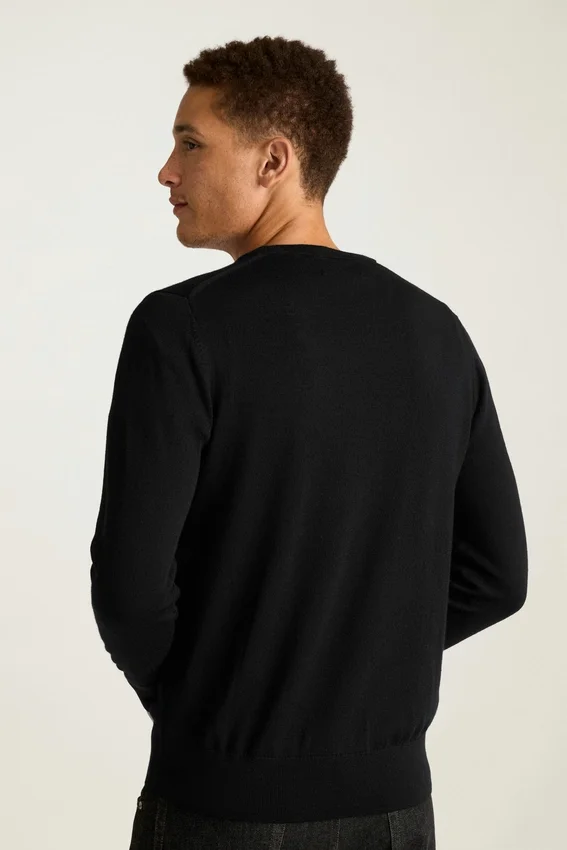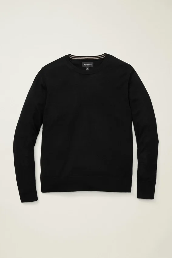 Lightweight Merino Wool | Jersey Body | Smaller, Refined 1X1 Rib Neck | Taller 1X1 Cuff and Hem | Hidden Contrast Color Stripe at Inside Neck Trim