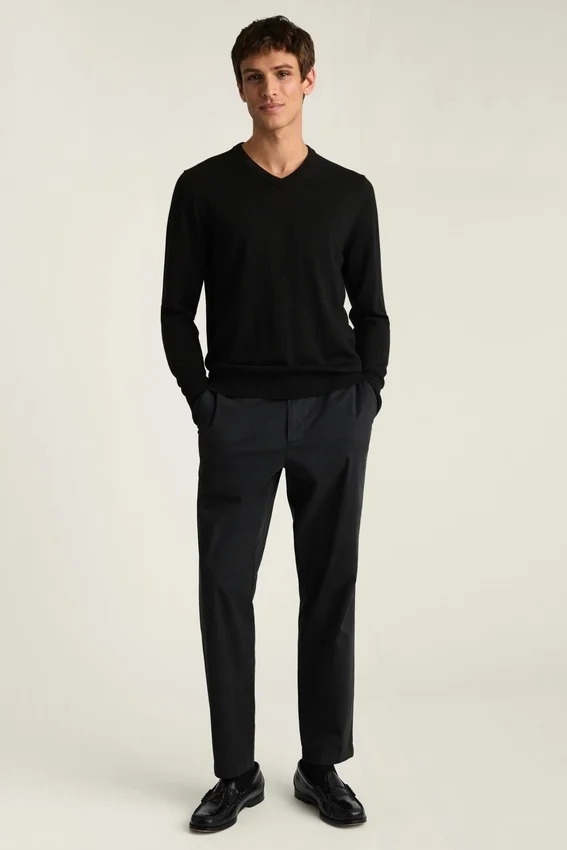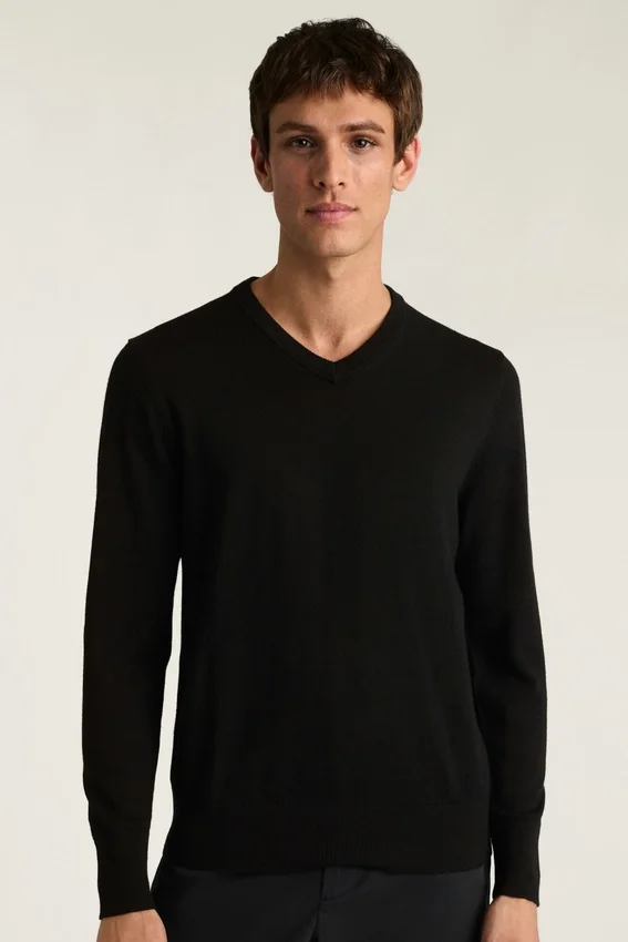 Lightweight Merino Wool | Jersey Body | Smaller, Refined 1X1 Rib Neck | Taller 1X1 Cuff and Hem | Hidden Contrast Color Stripe at Inside Neck Trim