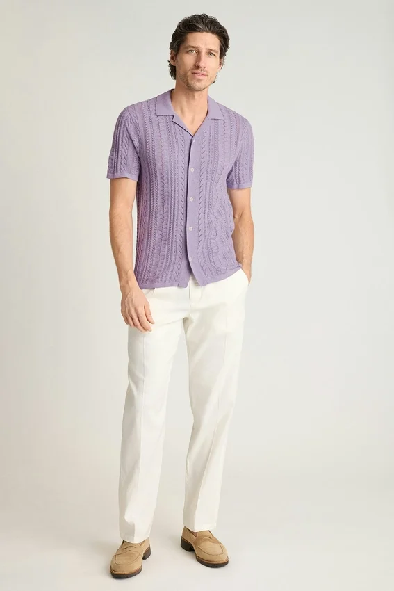 Super Soft Cotton-Cashmere Yarn | Allover Cable Texture Stitch | Can Be Worn Closed as a Shirt or Open as a Layering Piece | Lightweight