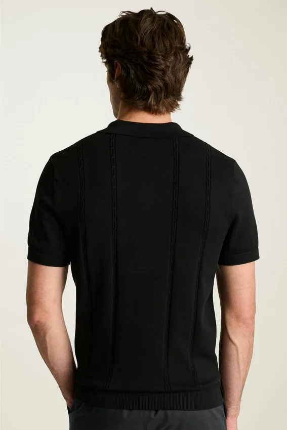 Soft and Breathable Cotton Yarn with Placed Cables on Body for Subtle Texture Detail | Great for Styling with a Suit