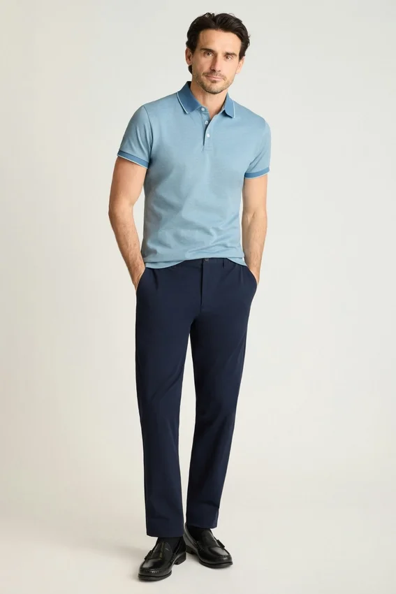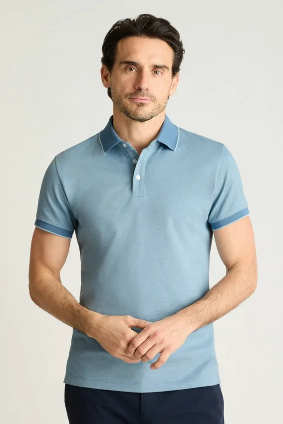 Stretch Pima Cotton with Piqua Texture and Flat-Knit Rib Trims | Anti-Odor, Anti-Spot, Moisture-Wicking Finish