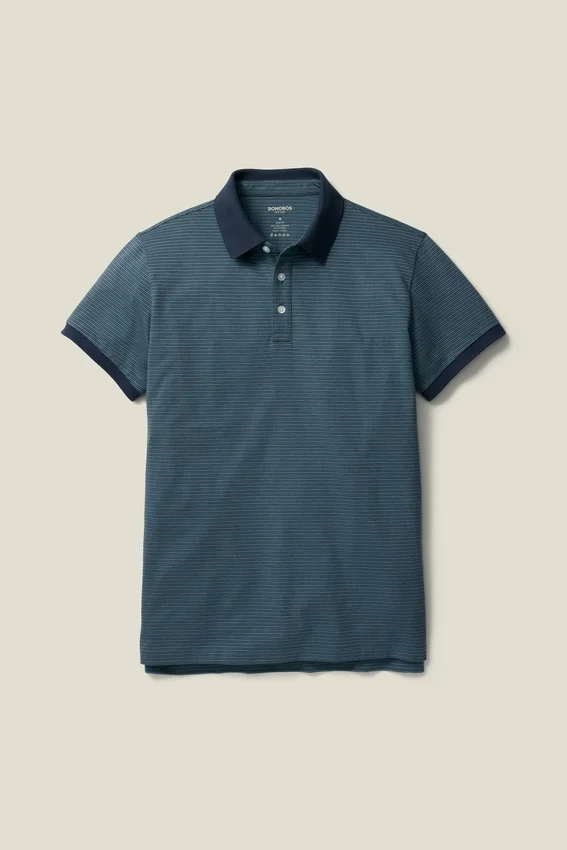 Stretch Pima Cotton with Piqua Texture and Flat-Knit Rib Trims | Anti-Odor, Anti-Spot, Moisture-Wicking Finish