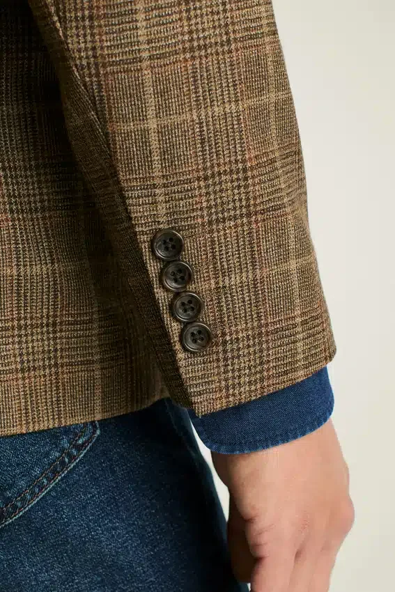 Fabric from Guabello | Unlined Interior with Binding at Seams | Non Functional Buttons at Cuff | Sleeve Lining | Double Vent | Interior Pockets and Locker Loopf
