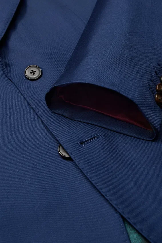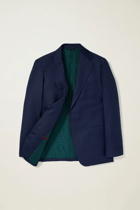 Super 150S Wool from Fratelli Tallia Di Delfino Mill in Italy | Fully Canvassed Construction | Pick Stitching Throughout | Genuine Horn Functional Buttons at Cuff | Fully Lined Interior in Custom Bemberg Lining | Bemberg Sleeve Lining | Interior Pockets with Real Mother-Of-Pearl Buttons | Back Vents