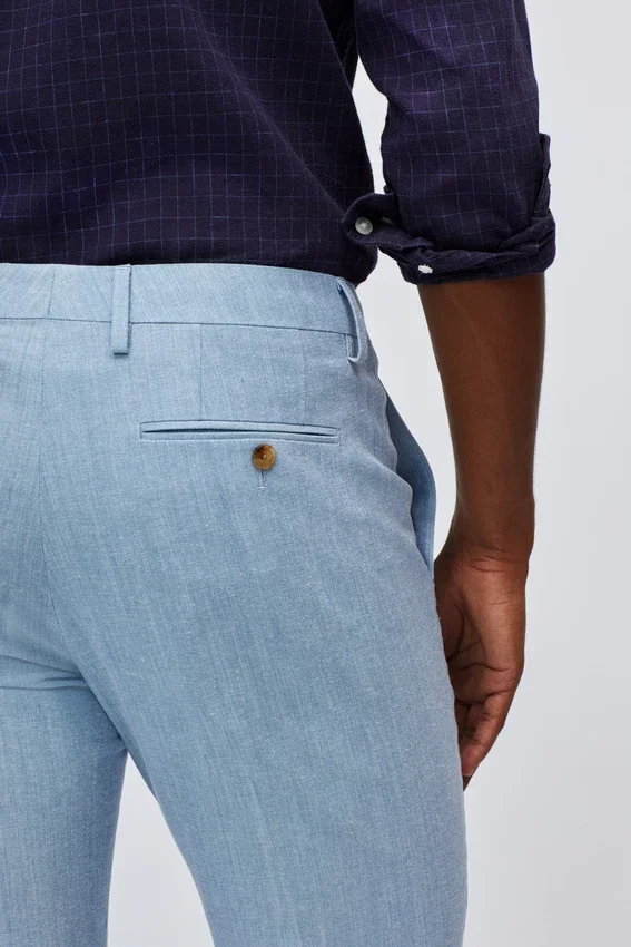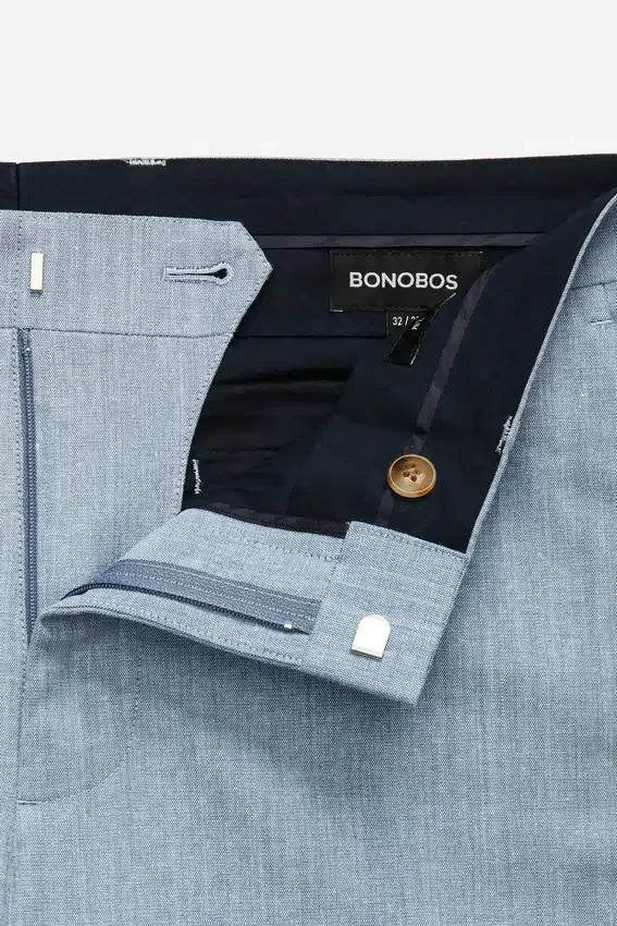 Signature Curved Waistband, Hook and Bar Closure at Center Front, Button Through Back Pockets, Tailorable Center Back Seam, and Half Lined Front Leg for Comfort.