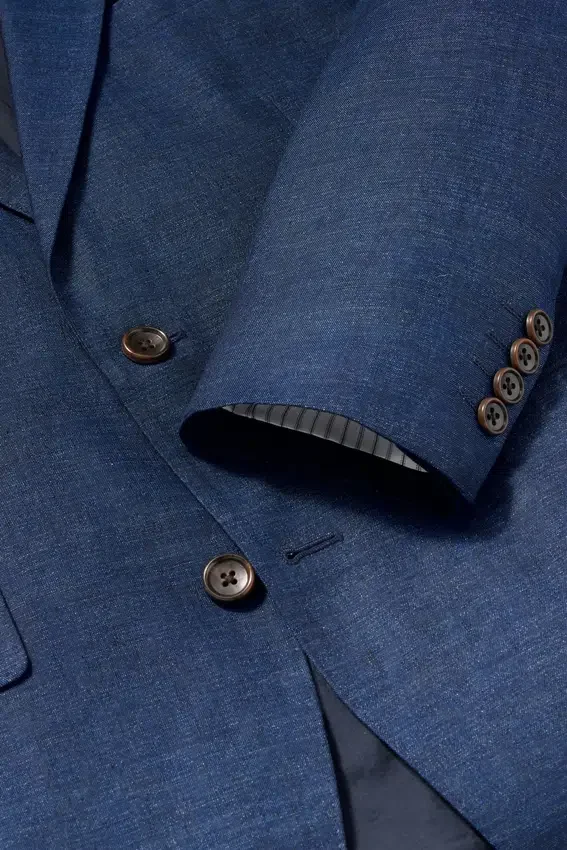 Fabric from Guabello | Partially Canvassed Construction | Notch Lapel | 2 Buttons at Front | Double Vent | Non-Functioning Button Cuffs for Easy Sleeve Tailoring | Fully Lined Interior | Custom Bonobos Flower Embroidery at Interior | Custom Bonobos Print at Interior | Lapel Pin is Removable