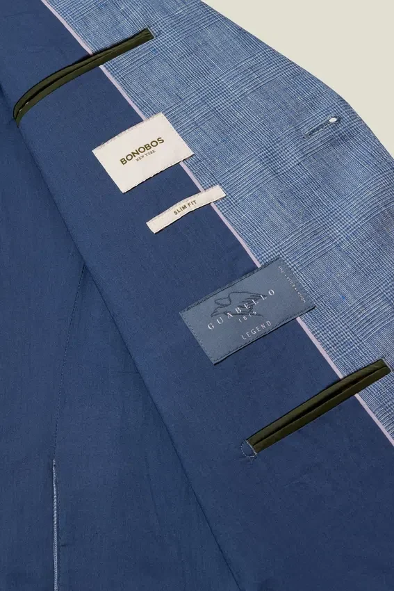 Fabric from Guabello | Partially Canvassed Construction | Notch Lapel | 2 Buttons at Front | Double Vent | Non-Functioning Button Cuffs for Easy Sleeve Tailoring | Fully Lined Interior | Custom Bonobos Flower Embroidery at Interior | Custom Bonobos Print at Interior | Lapel Pin is Removable